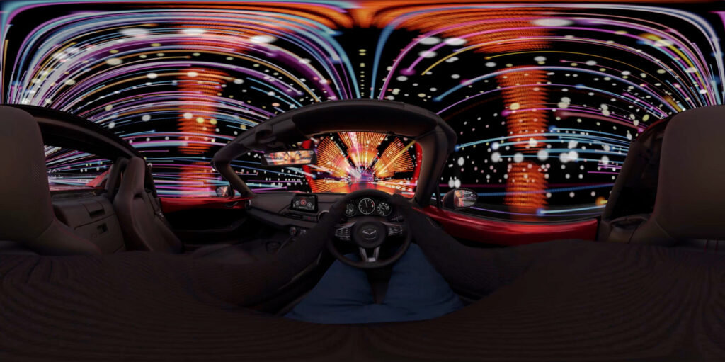 For example, we recently helped out on a project for Lively Agency that created a 4D test drive experience of the Mazda MX-5 RF. Users sat in a real car and put on a headset for a virtual drive that took them from Iceland to the South of France. To make it 4D, rumble speakers were placed under the car seats to give the impression of engine vibration, the soundtrack was played through the in-car sound system and a 5:1 surround sound system was installed to give spatial audio – for example, passing trees or wind noise. This was all enhanced by a system of fans and heat bulbs arranged around the car to recreate the feeling of roof-down driving. In Iceland, there was a cool wind blowing; in the South of France the heat bulbs made it feel like the sun was beating down on the driver. Combined, the experience became immediately and believably immersive – increasing the impact by a considerable margin.