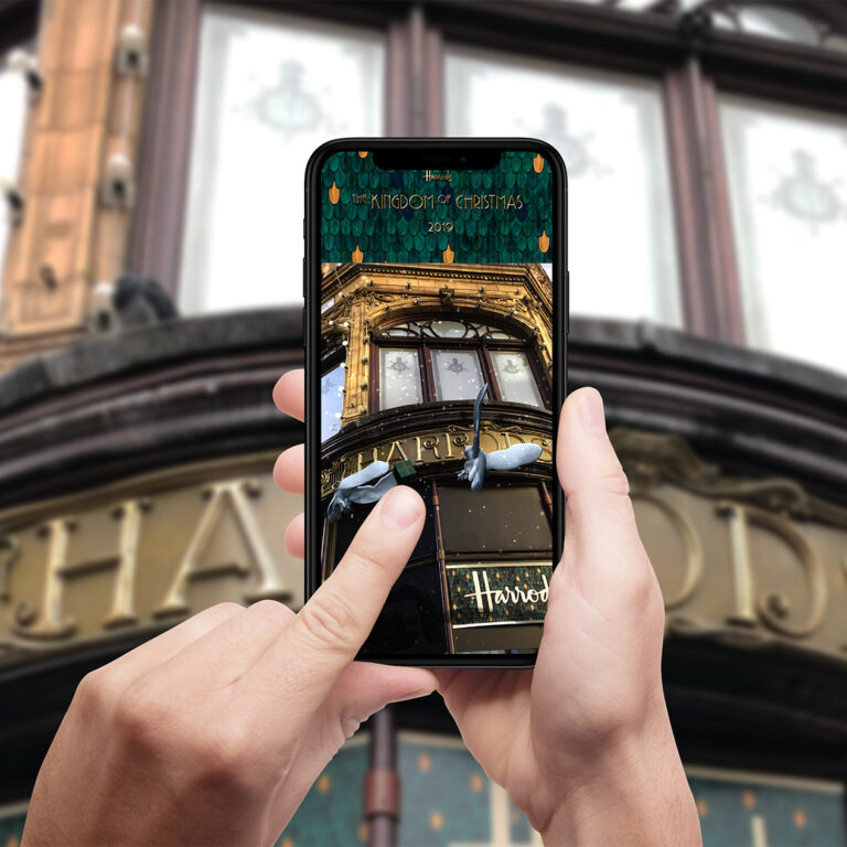 Harrods is world–famous for its luxury and festive displays. For Christmas 2019, they wanted to elevate their in–store experience with something interactive for families. We created the Kingdom of Christmas AR trail – an enchanting digital layer that blended with Harrods’ physical interior, inviting visitors to hunt, discover and unlock magical animal animations throughout the store.